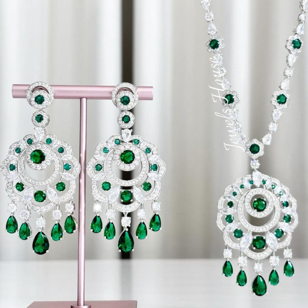 - طقم من عقد وحلق مطلي ومرصع بالالماس الصناعي .