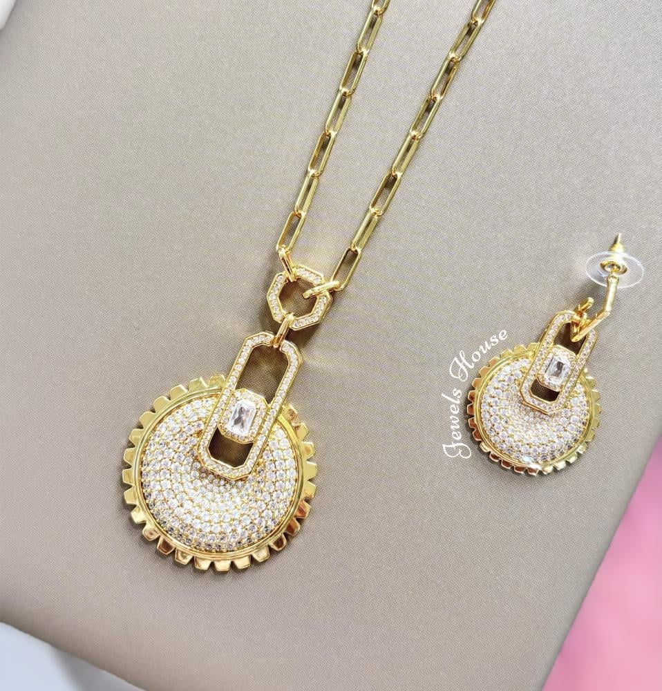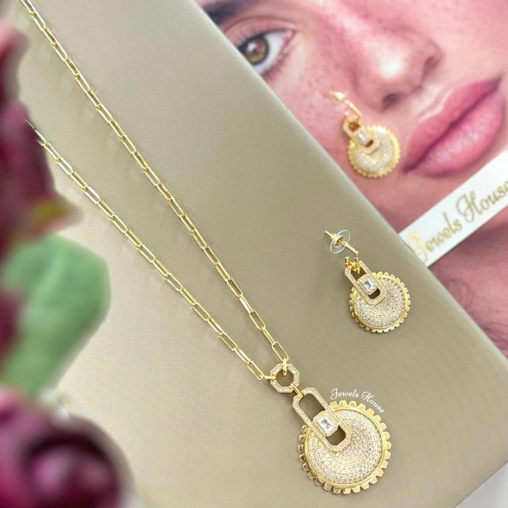 - طقم من سلسال طويل وحلق مطلي ومرصع بالالماس الصناعي .