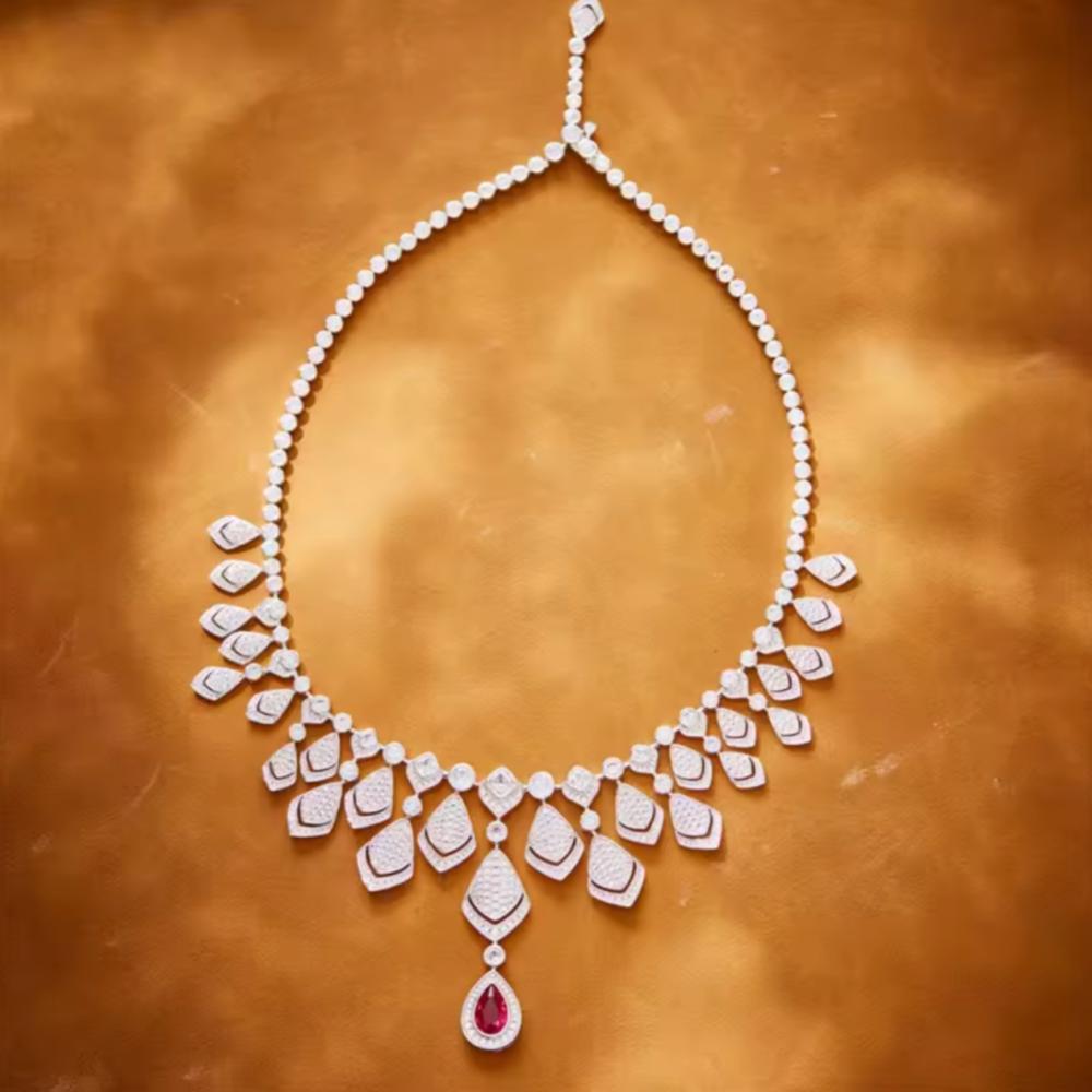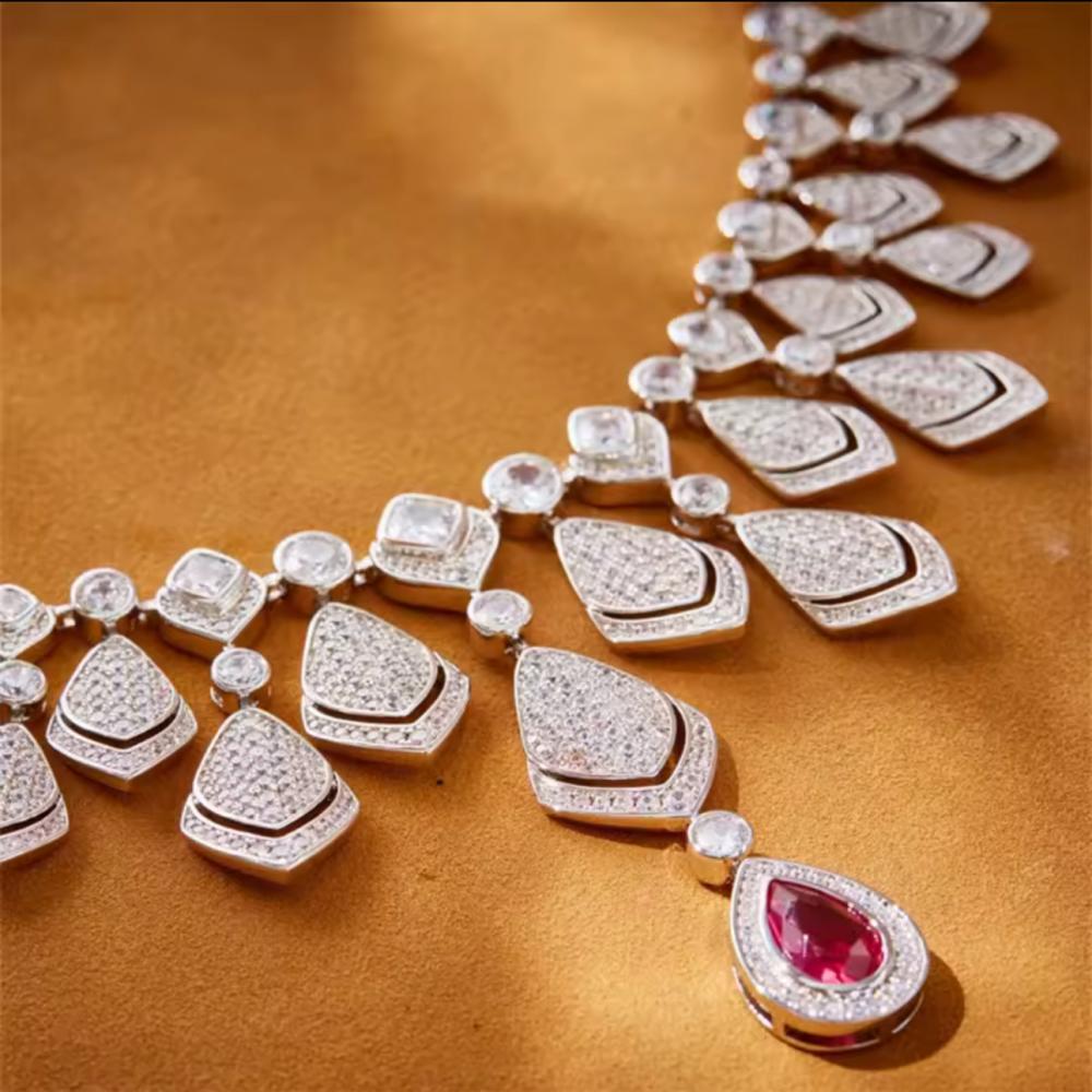 - طقم فاخر مكون من عقد وحلق واسوار وخاتم مطلي ومرصع بالالماس الصناعي .